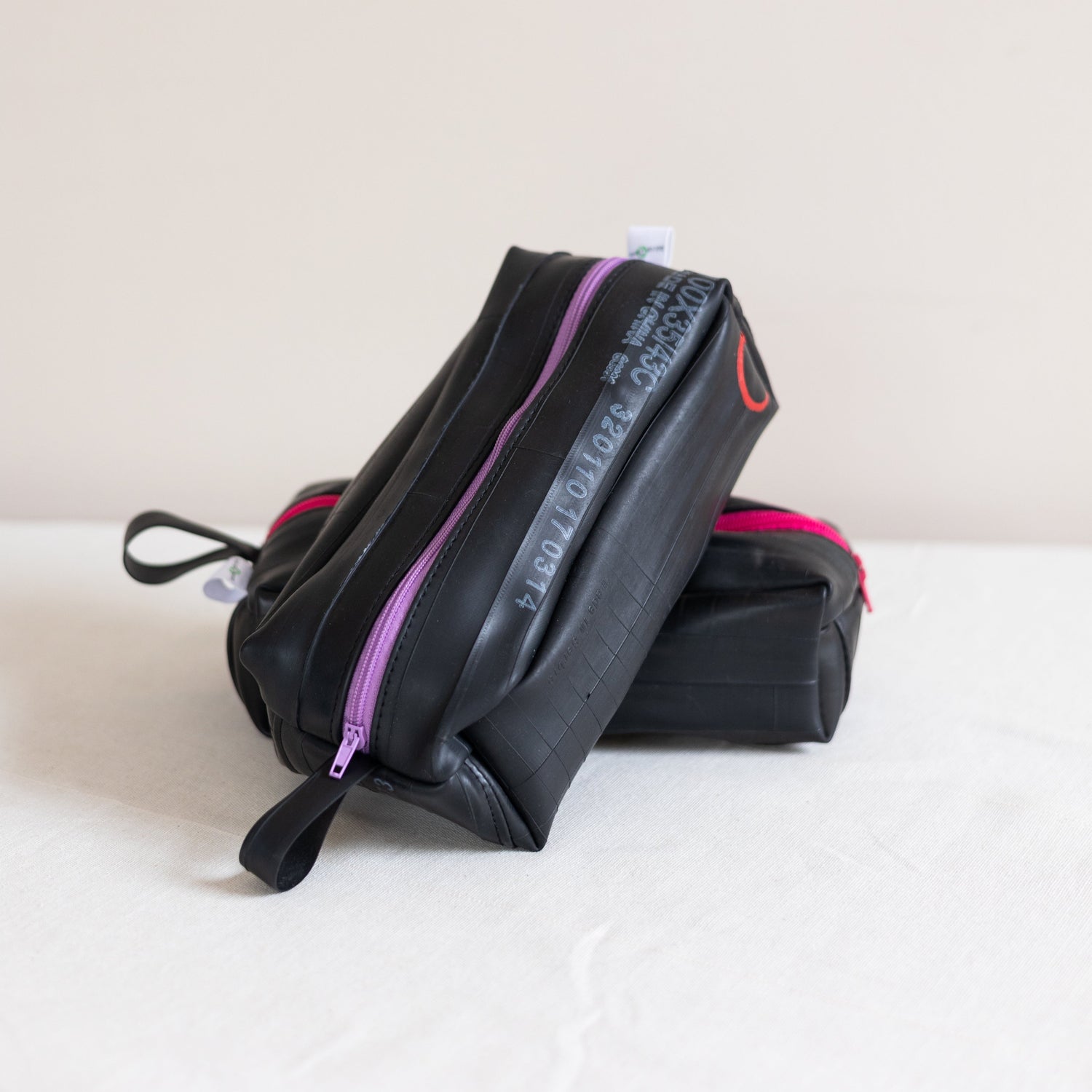 Chaque pièce de nos collections est fabriquée à partir de chambres à air de vélo. Du sac à dos au porte-clés, en passant par les trousses de toilette et la petite maroquinerie, chaque objet est unique.